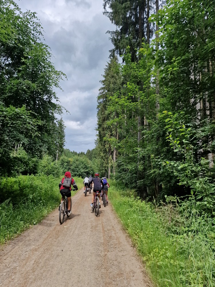 Na našich vyjížďkách pestrou krajinou Českého ráje, kde kopec střídá jiný kopec, jsme navštívili známá místa jako Trosky, Kost, Hrubou Skálu nebo Valdštejn. Odvážnější podnikli dobrodružný sjezd z Vyskeře. Celkem se nám podařilo najet minimálně 140 kilometrů, mnozí si ještě přidali.