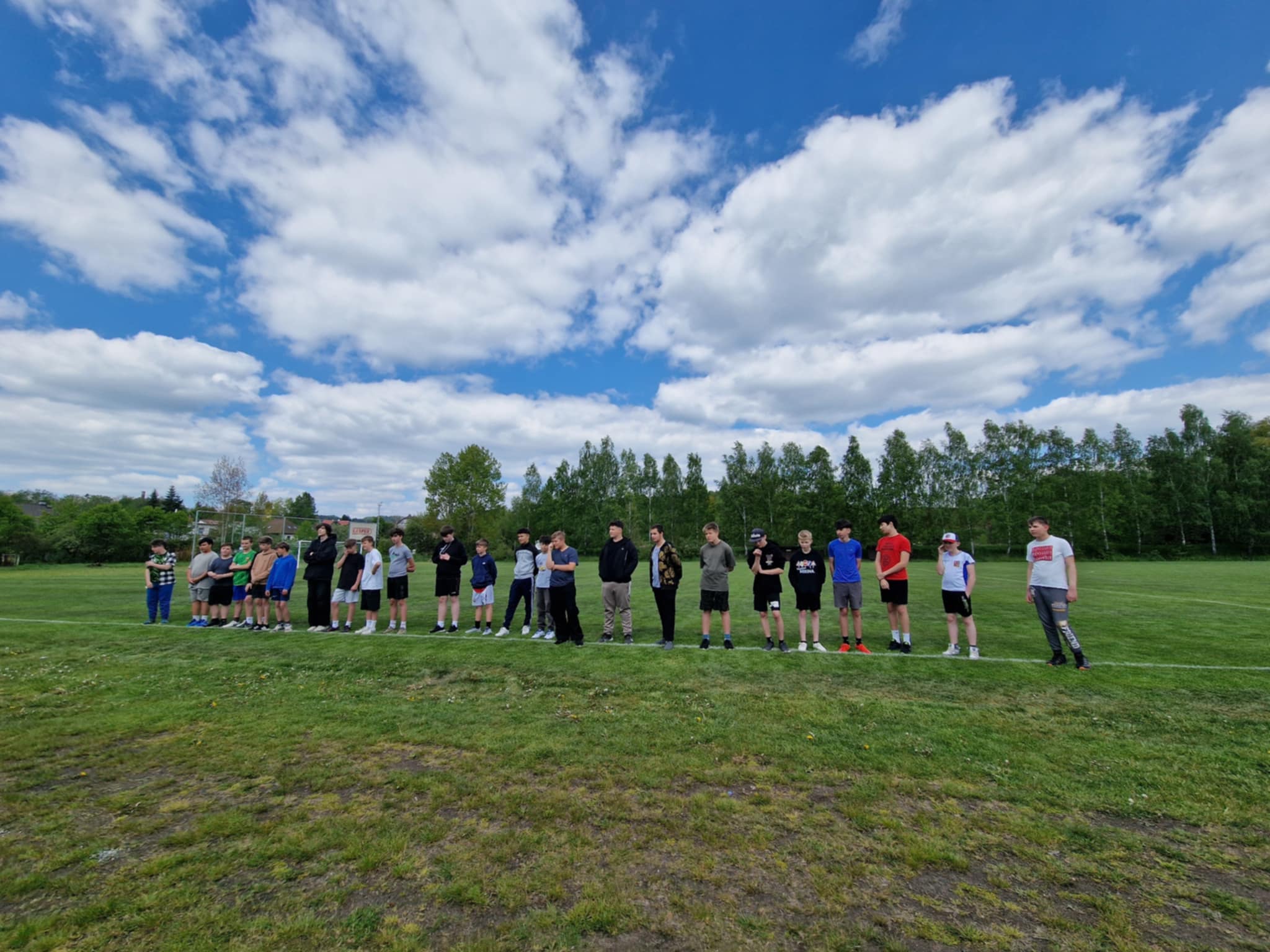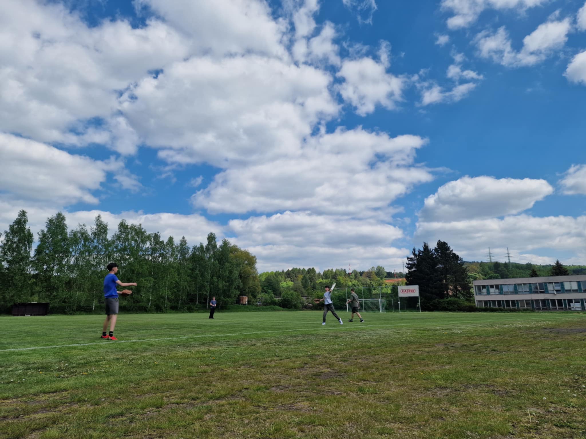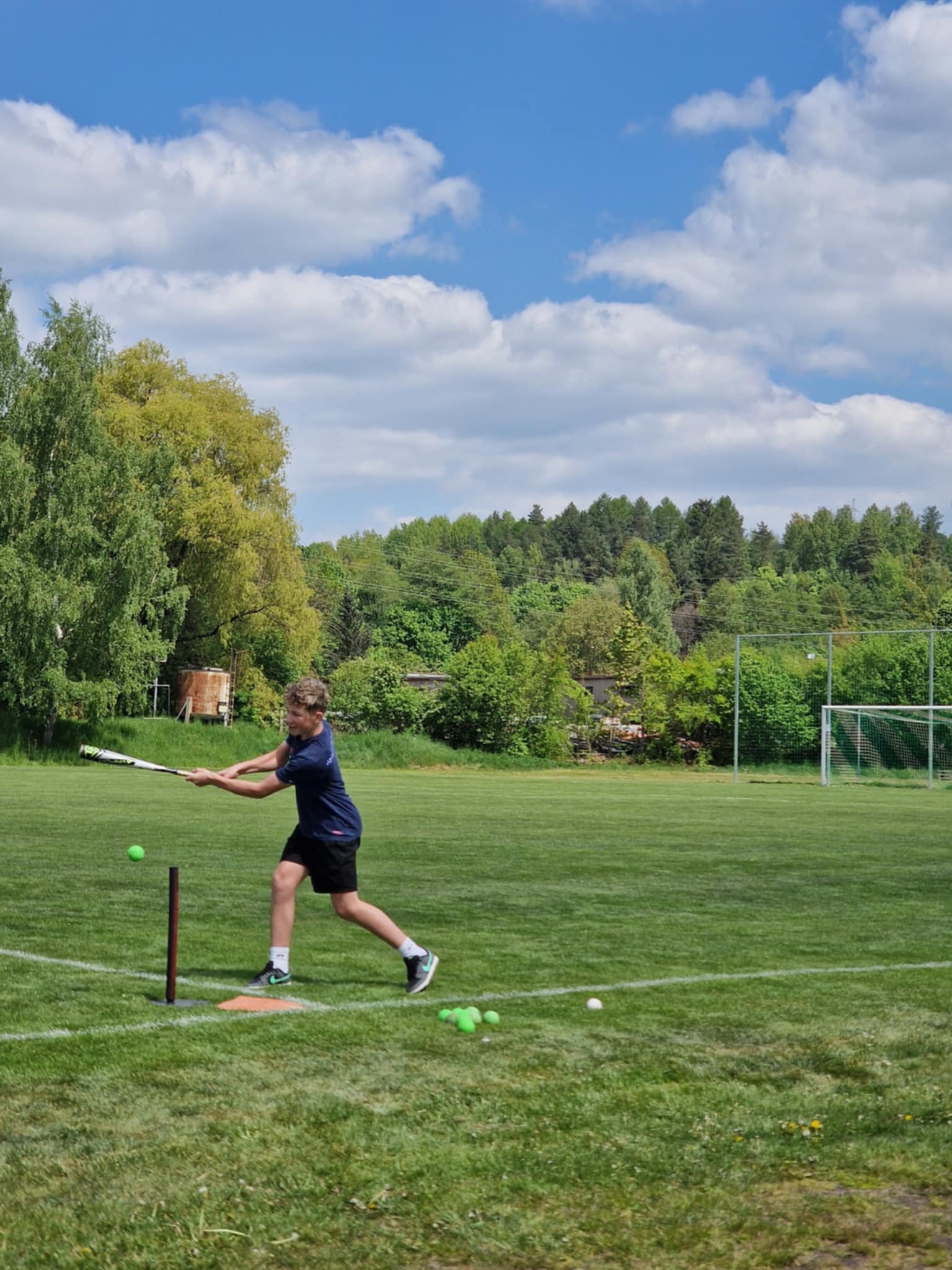 V pondělí 12. května si chlapci ze 7. a 8. ročníku užili tělocvik ve znamení baseballu. Pod vedením pana učitele Mollingra si vyzkoušeli základy tohoto amerického sportu – od nácviku ve dvojicích až po samotnou hru.