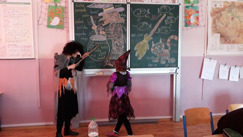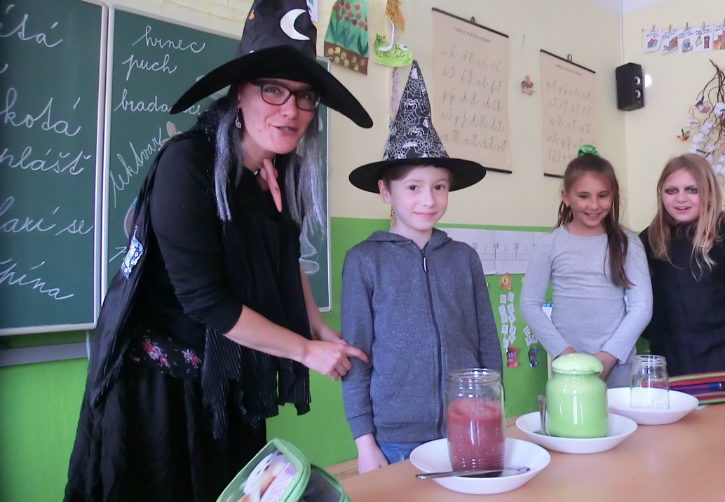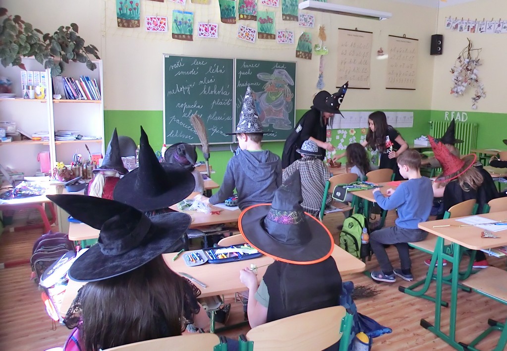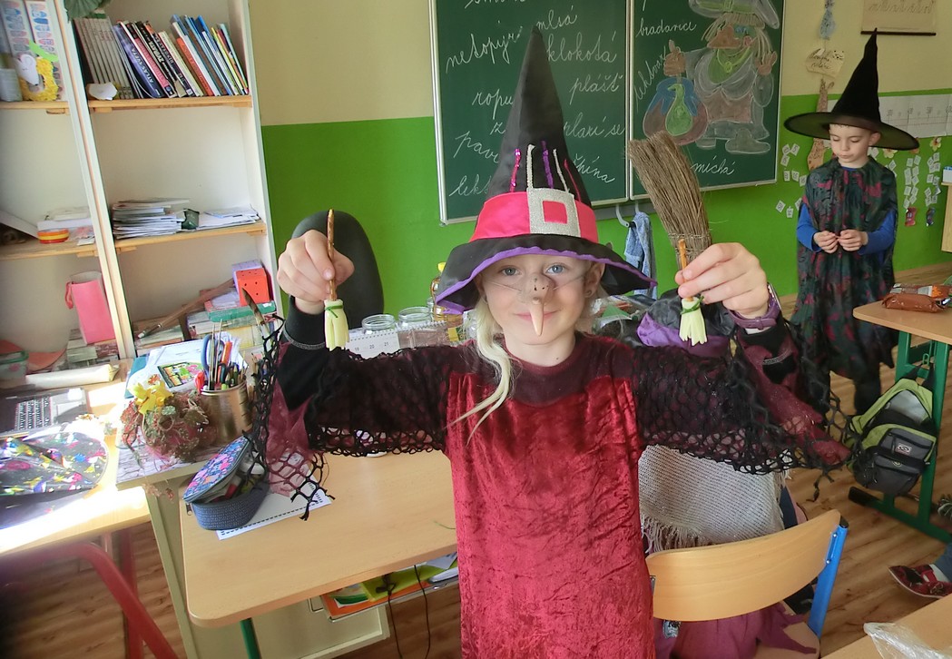 Hráli jsme různé hry, jako třeba čarodějné tvoření – to se mi moc líbilo. A taky jsme dělali pokusy. A ještě jsme tančili s koštětem. Paní učitelku jsme skoro nepoznali, protože mluvila jako čarodějnice a vypadala tak. A bylo to nádherný.