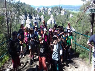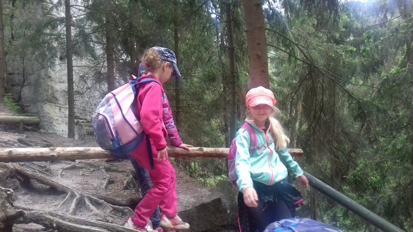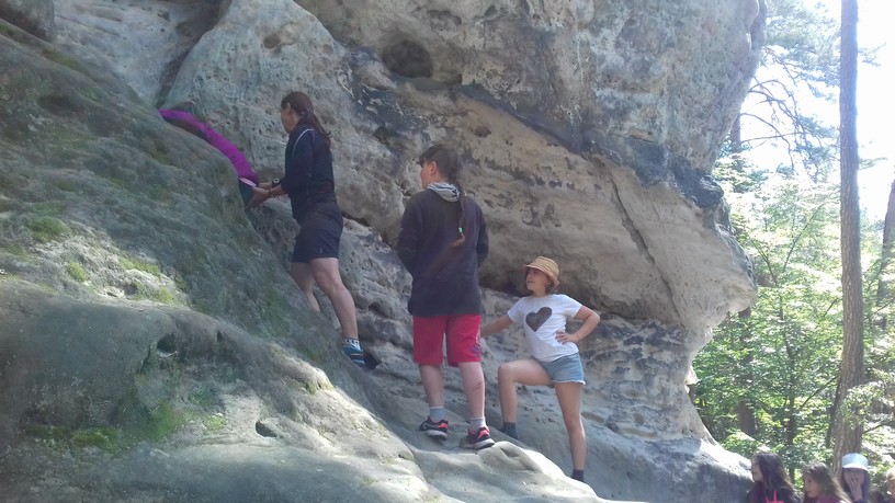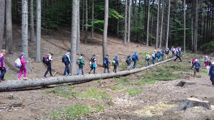 Konečně jsme se dočkali! Kdo by se netěšil do ráje? A my tam jedeme rovnou na tři dny. Nasedáme do vlaku, posíláme poslední pozdravy rodičům a vyrážíme vstříc novým dobrodružstvím. Z Turnova už ale šlapeme „po svých“, což je mnohem větší zábava, poněvadž si můžeme prohlédnout sochy ze dřeva, nakrmit hospodářská zvířata, napít se z „chytrých“ pramenů, těšit se z úžasné přírody a třeba se i projít po spadlém stromu. Cestujeme dokonce i v čase. Díky návštěvě hradu Valdštejn si umíme živě představit, jak se dobývá a brání hrad. Tím ale rozhodně nekončíme. Po ubytování vyrážíme do kempu za další zábavou. Další den nám azurová obloha říká, že se počasí určitě vydaří. Lezeme na Dračí zub (skála), užíváme si dech beroucích výhledů, stavíme domečky pro skřítky, prohlížíme skalní reliéfy, opékáme hady a vydáváme se na romantickou noční stezku. V nohách máme 17 km a znaveni padáme do postýlek. Těšíme se na další den, co nového zažijeme. Po výborné snídani se dělíme na tři skupiny, které se vzájemně střídají v těchto činnostech: střelba ze vzduchovky, obratnost v chůzi po kládě padlého stromu přes potok, hry v kempu. A protože toho máme hodně co vyprávět, vydáváme se zpátky domů. Sláva super výletům, nezmokli jsme, už jsme tu!