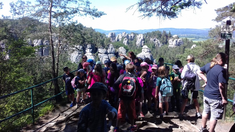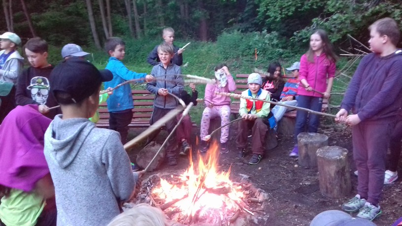 Konečně jsme se dočkali! Kdo by se netěšil do ráje? A my tam jedeme rovnou na tři dny. Nasedáme do vlaku, posíláme poslední pozdravy rodičům a vyrážíme vstříc novým dobrodružstvím. Z Turnova už ale šlapeme „po svých“, což je mnohem větší zábava, poněvadž si můžeme prohlédnout sochy ze dřeva, nakrmit hospodářská zvířata, napít se z „chytrých“ pramenů, těšit se z úžasné přírody a třeba se i projít po spadlém stromu. Cestujeme dokonce i v čase. Díky návštěvě hradu Valdštejn si umíme živě představit, jak se dobývá a brání hrad. Tím ale rozhodně nekončíme. Po ubytování vyrážíme do kempu za další zábavou. Další den nám azurová obloha říká, že se počasí určitě vydaří. Lezeme na Dračí zub (skála), užíváme si dech beroucích výhledů, stavíme domečky pro skřítky, prohlížíme skalní reliéfy, opékáme hady a vydáváme se na romantickou noční stezku. V nohách máme 17 km a znaveni padáme do postýlek. Těšíme se na další den, co nového zažijeme. Po výborné snídani se dělíme na tři skupiny, které se vzájemně střídají v těchto činnostech: střelba ze vzduchovky, obratnost v chůzi po kládě padlého stromu přes potok, hry v kempu. A protože toho máme hodně co vyprávět, vydáváme se zpátky domů. Sláva super výletům, nezmokli jsme, už jsme tu!