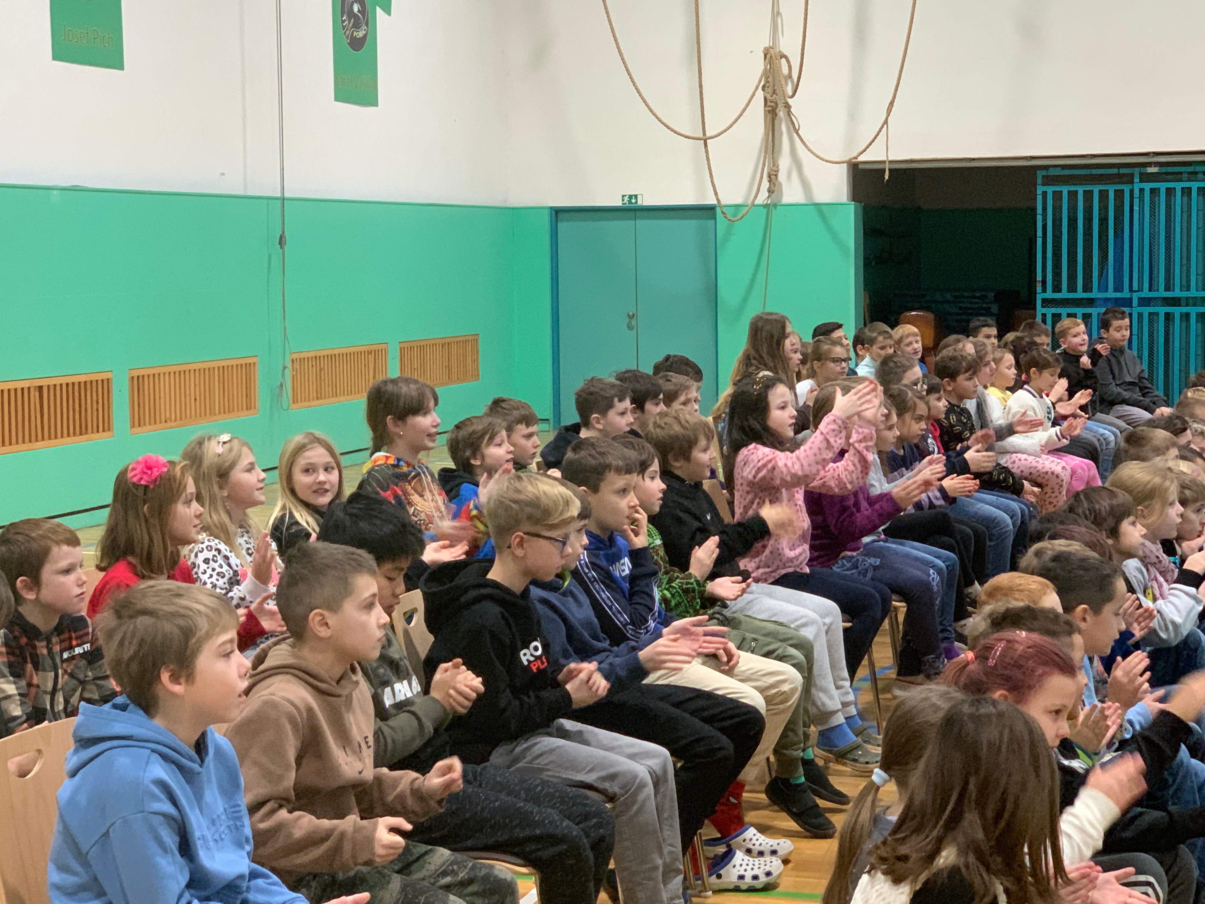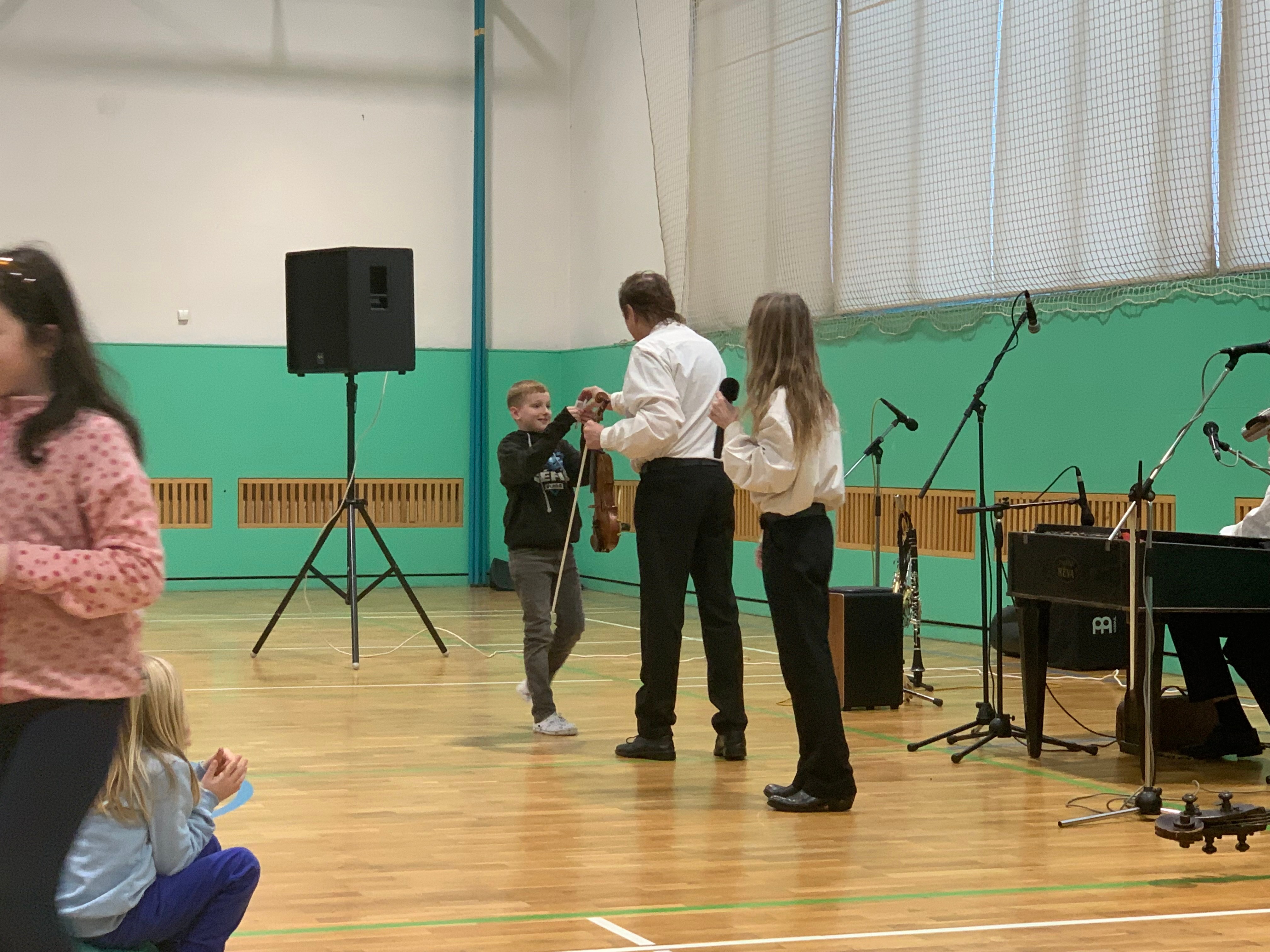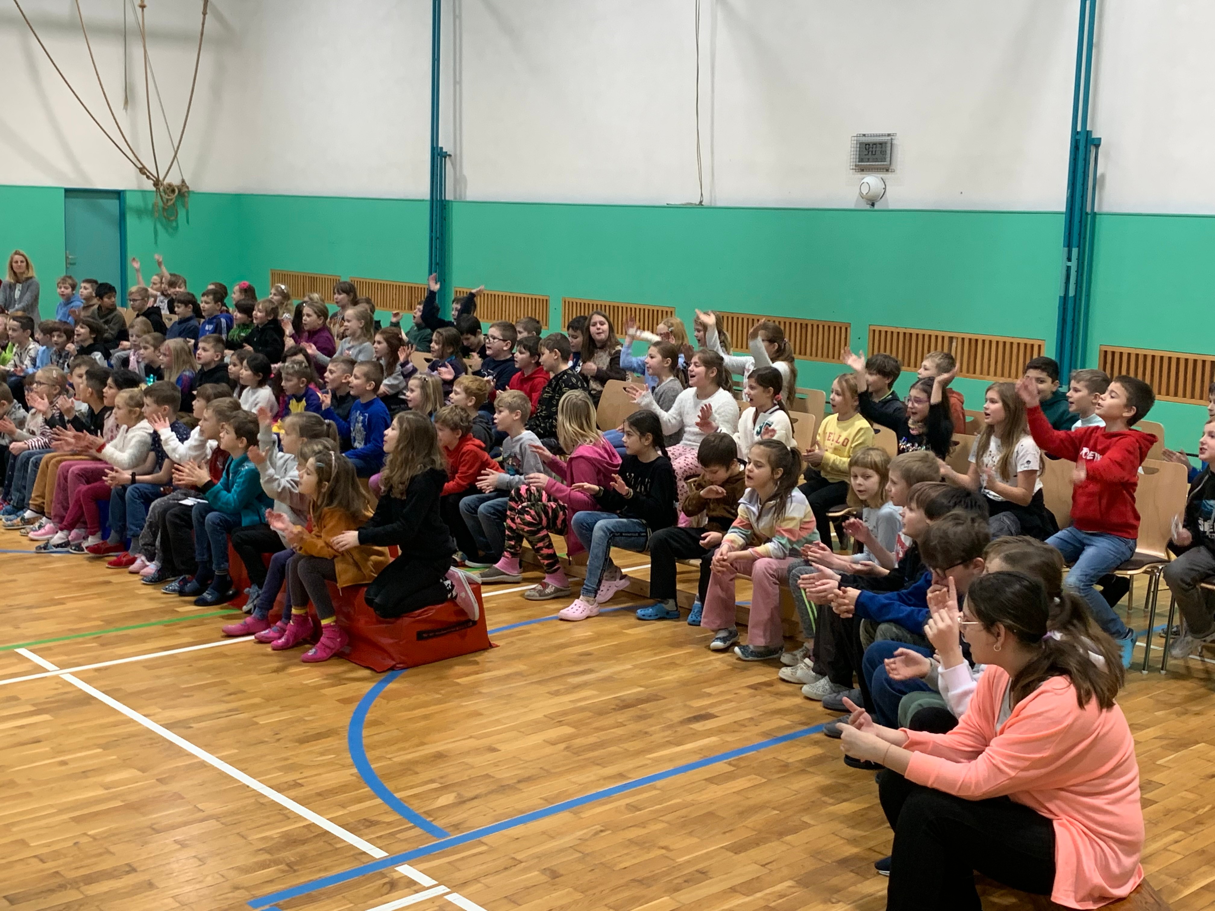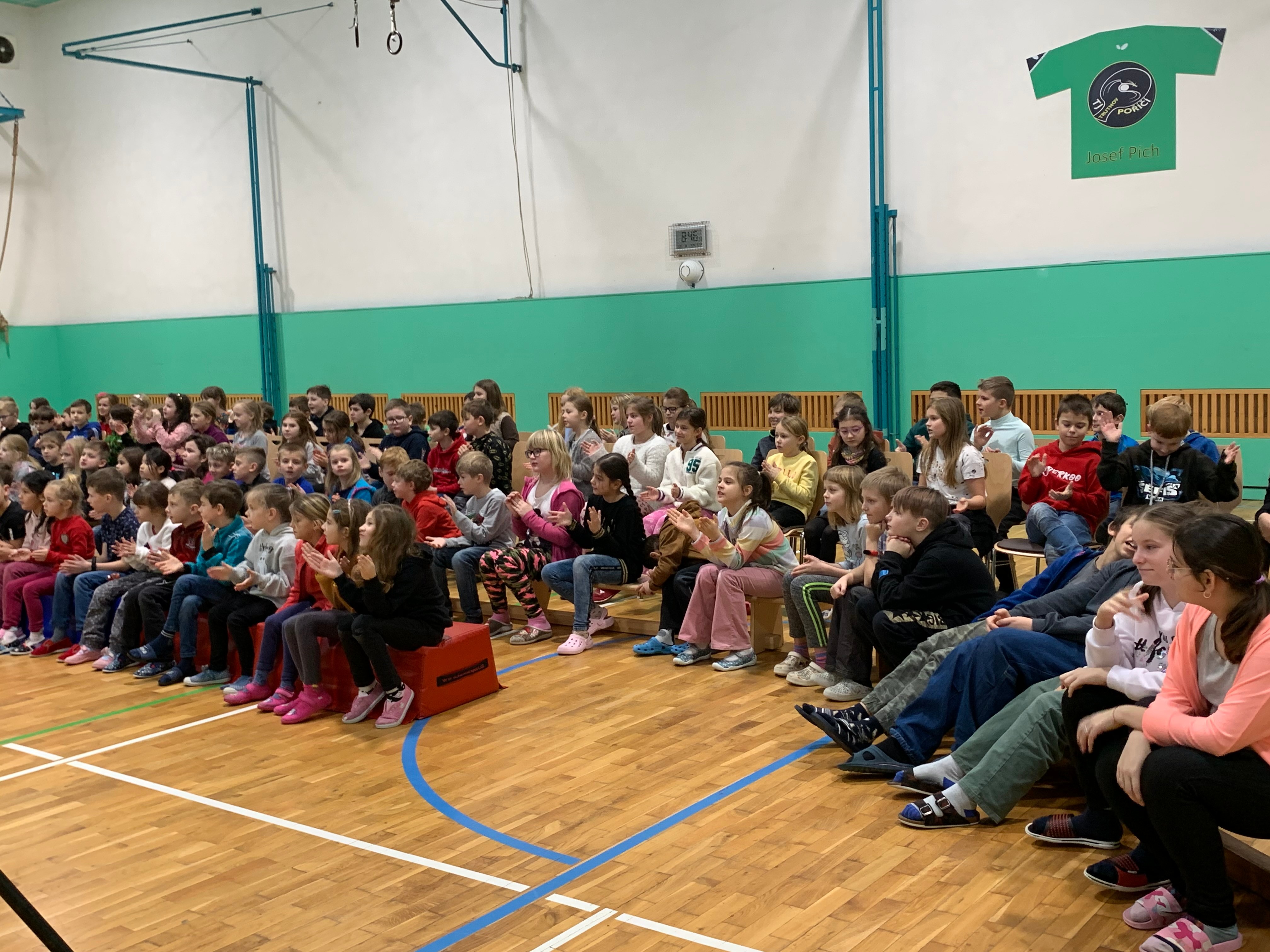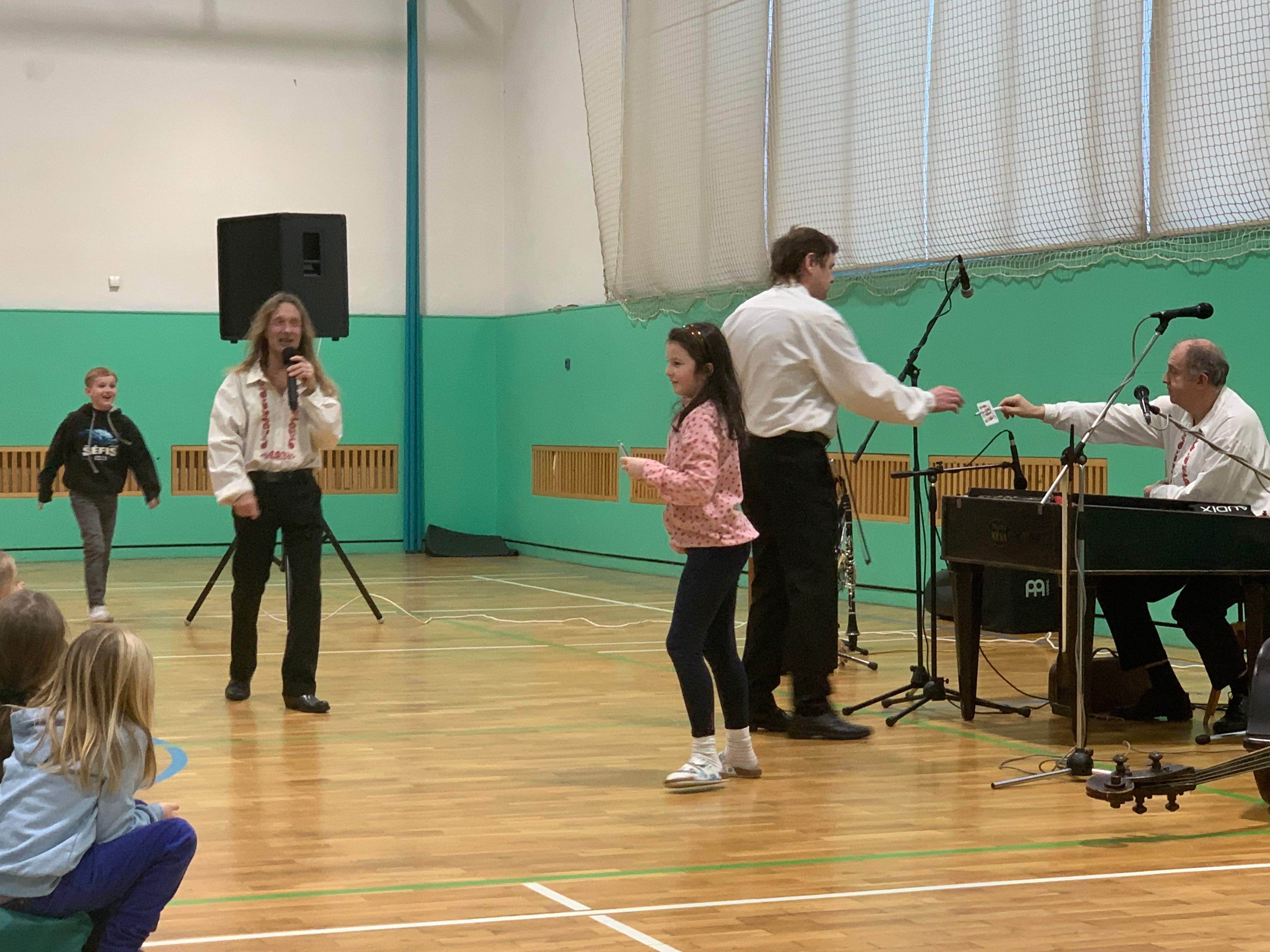 V pondělí 8.1. se děti z 1. stupně zúčastnily vystoupení cimbálové kapely Réva. Většina z nich viděla cimbál, strunný hudební nástroj známý především na Moravě, poprvé v životě. Byl to pro ně unikátní zážitek. Kromě lidových písní zazněly i rockové “pecky” od skupiny Queen či Imagine Dragons nebo klasická hudba v podobě Vltavy od B. Smetany. Děti si mohly zasoutěžit, zazpívat i zatančit. Po obrovském potlesku jim kapela věnovala přídavek.