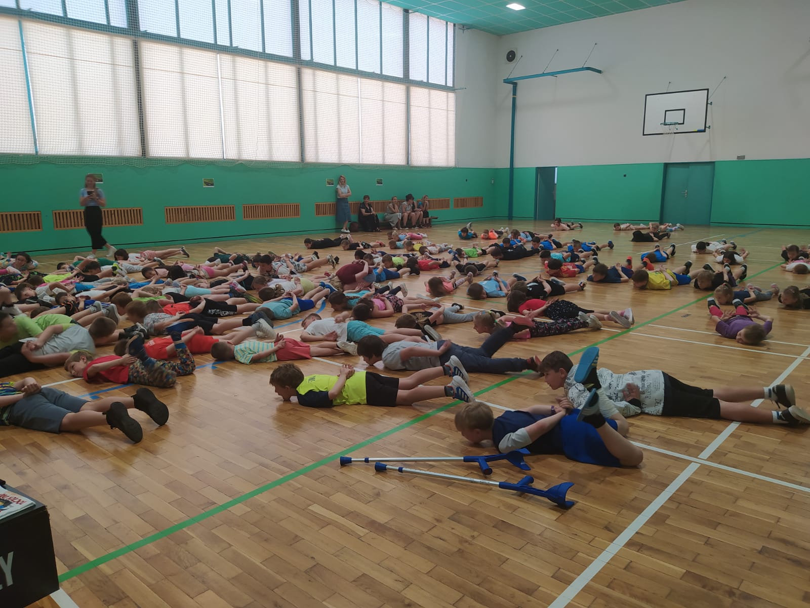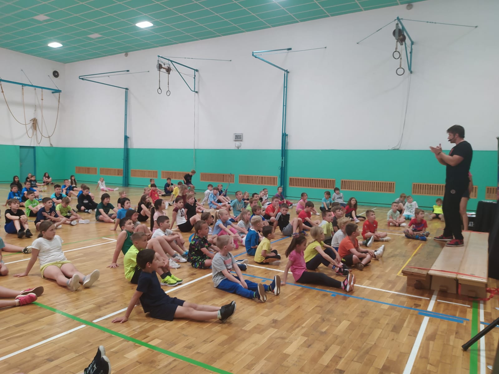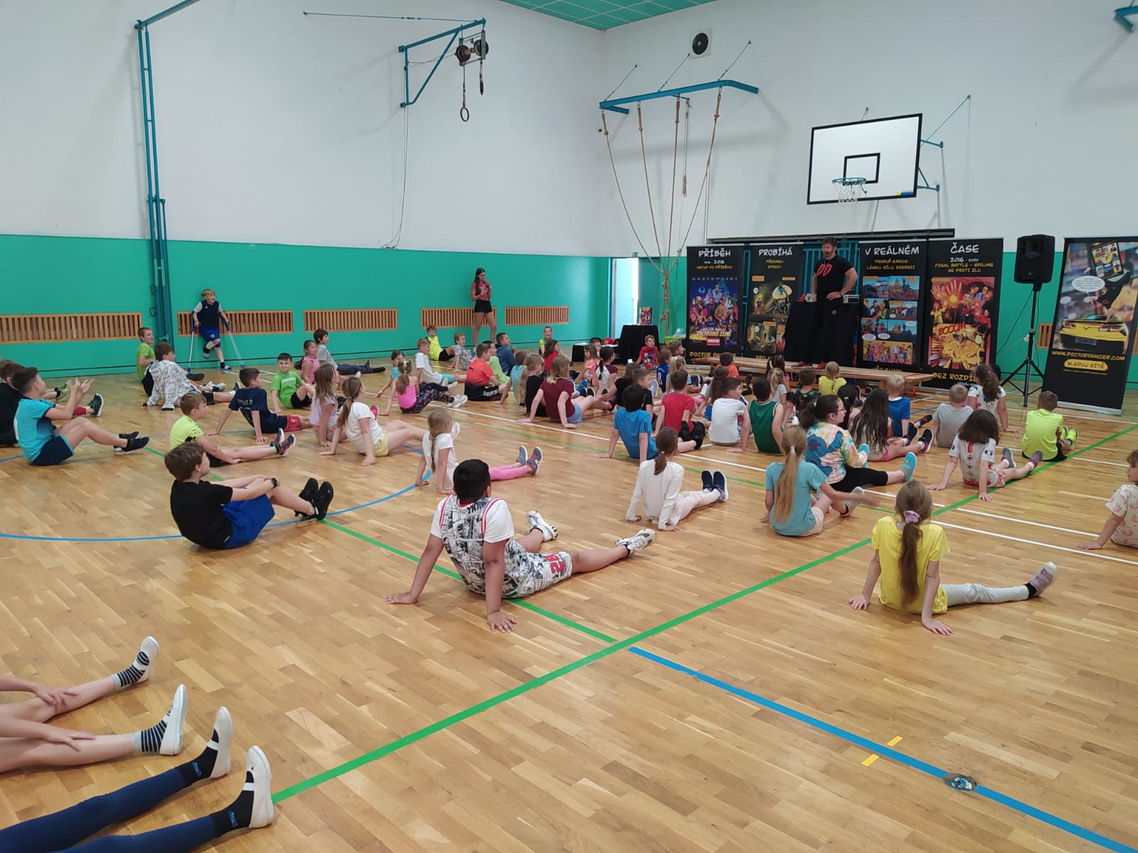 Předposlední červnovou středu se žáci prvního stupně zúčastnili pohybově-hereckého motivačního programu. Cílem bylo rozhýbat každého, což se také podařilo. Pozitivní přístup, vhodně vybraná hudba, promyšlené taneční kroky a energie Doctora Dancera roztančily všechny bez výjimky, a to i paní učitelky. Naučili jsme se krátké choreografie inspirované populárními tanečními styly. Nechyběla ani herecká složka inspirovaná komiksem a videohrami. Žáci odcházeli nadšení a příjemně unavení. Nechybělo rozdávání dárečků a autogramiáda.