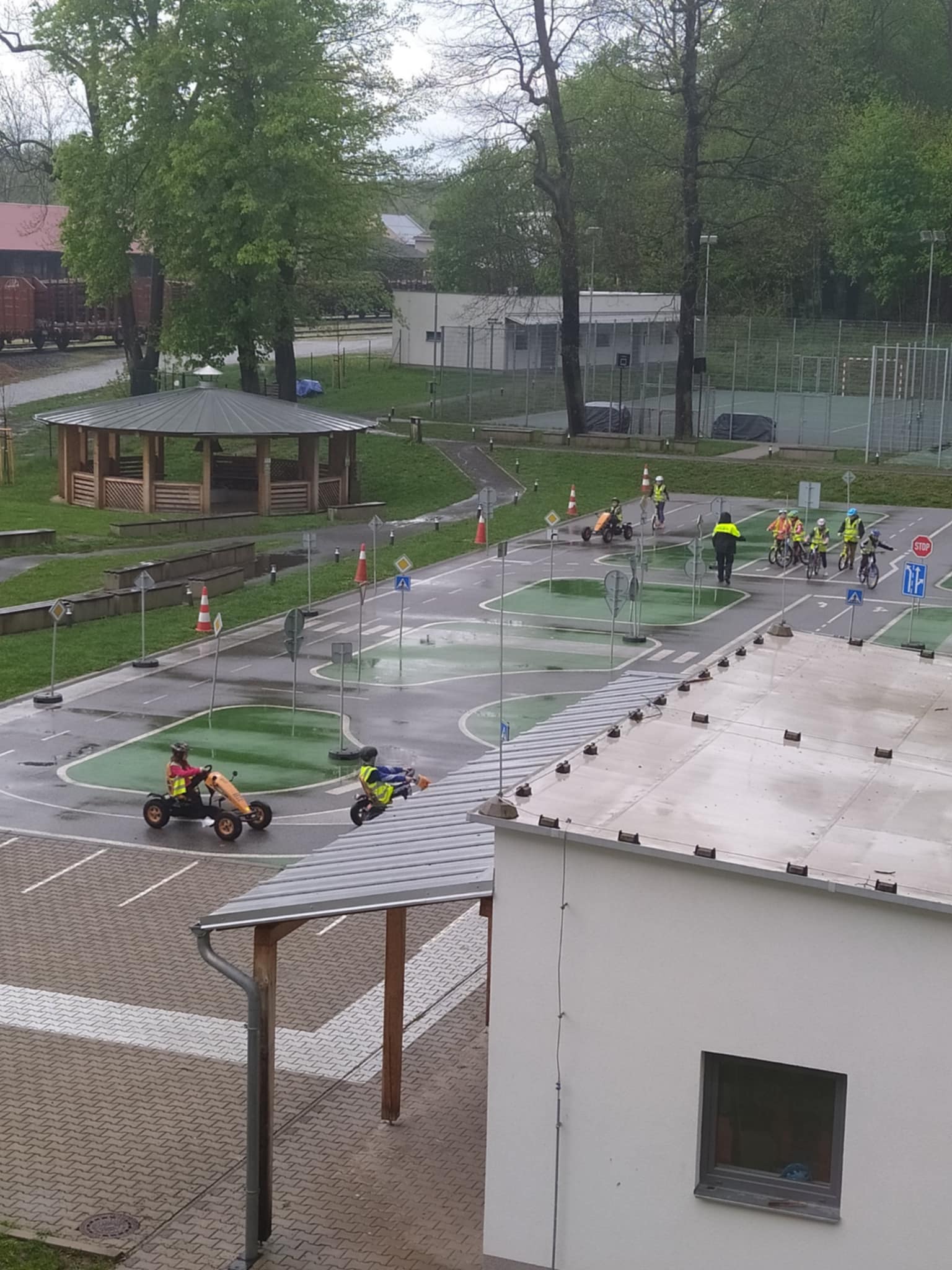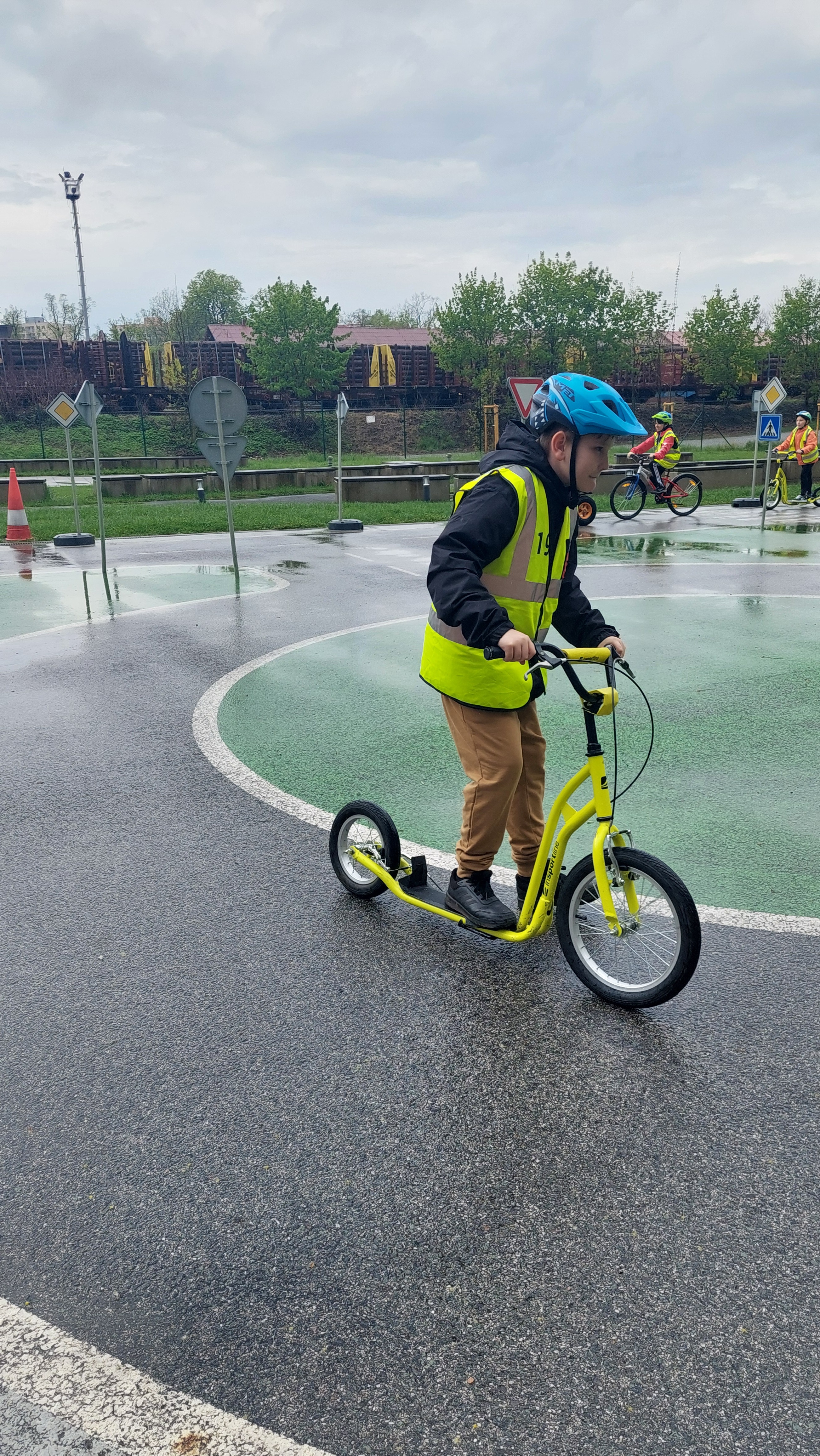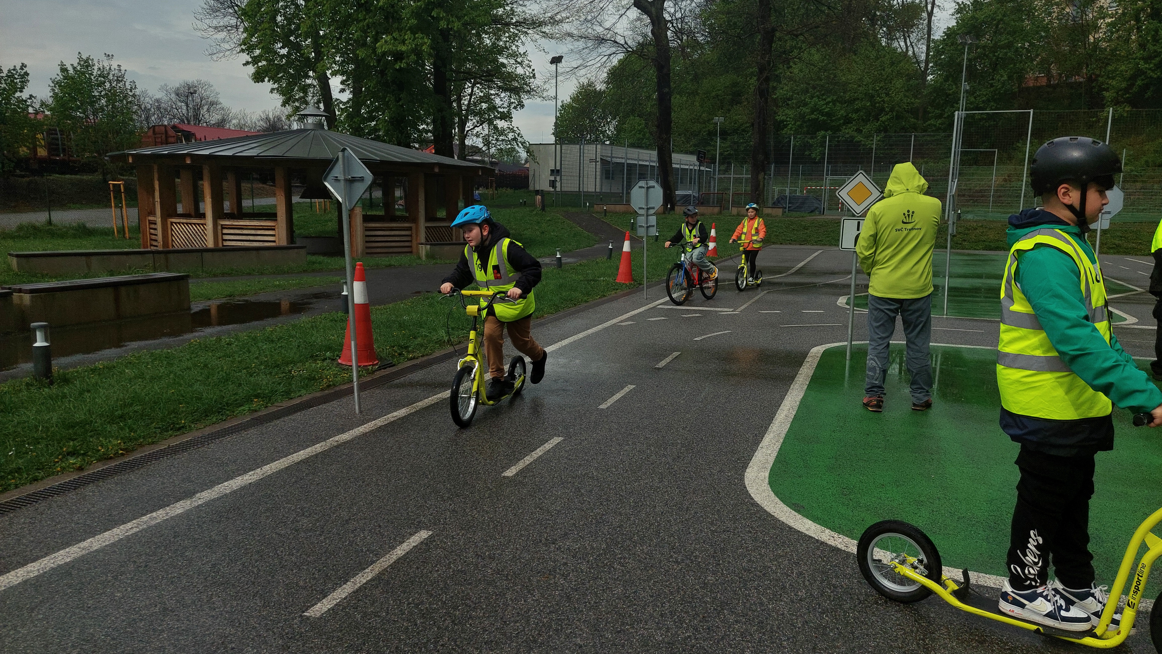 Ve čtvrtek 24. dubna se třídy 4.A a 4.B vydaly na dopravní hřiště, kde si žáci vyzkoušeli nejen své cyklistické dovednosti, ale také si ověřili znalosti dopravních pravidel. I když nám počasí příliš nepřálo a chvílemi to vypadalo, že jízdy budeme muset odložit, nakonec jsme se přece jen dostali do sedel a mohli celý výcvik absolvovat.