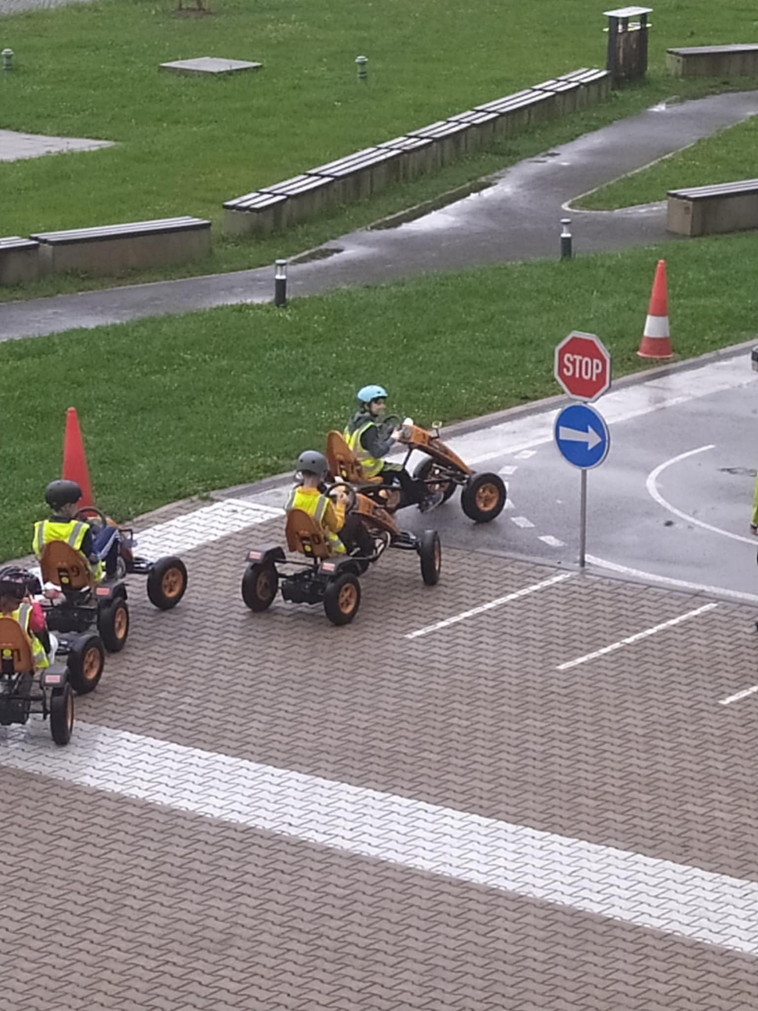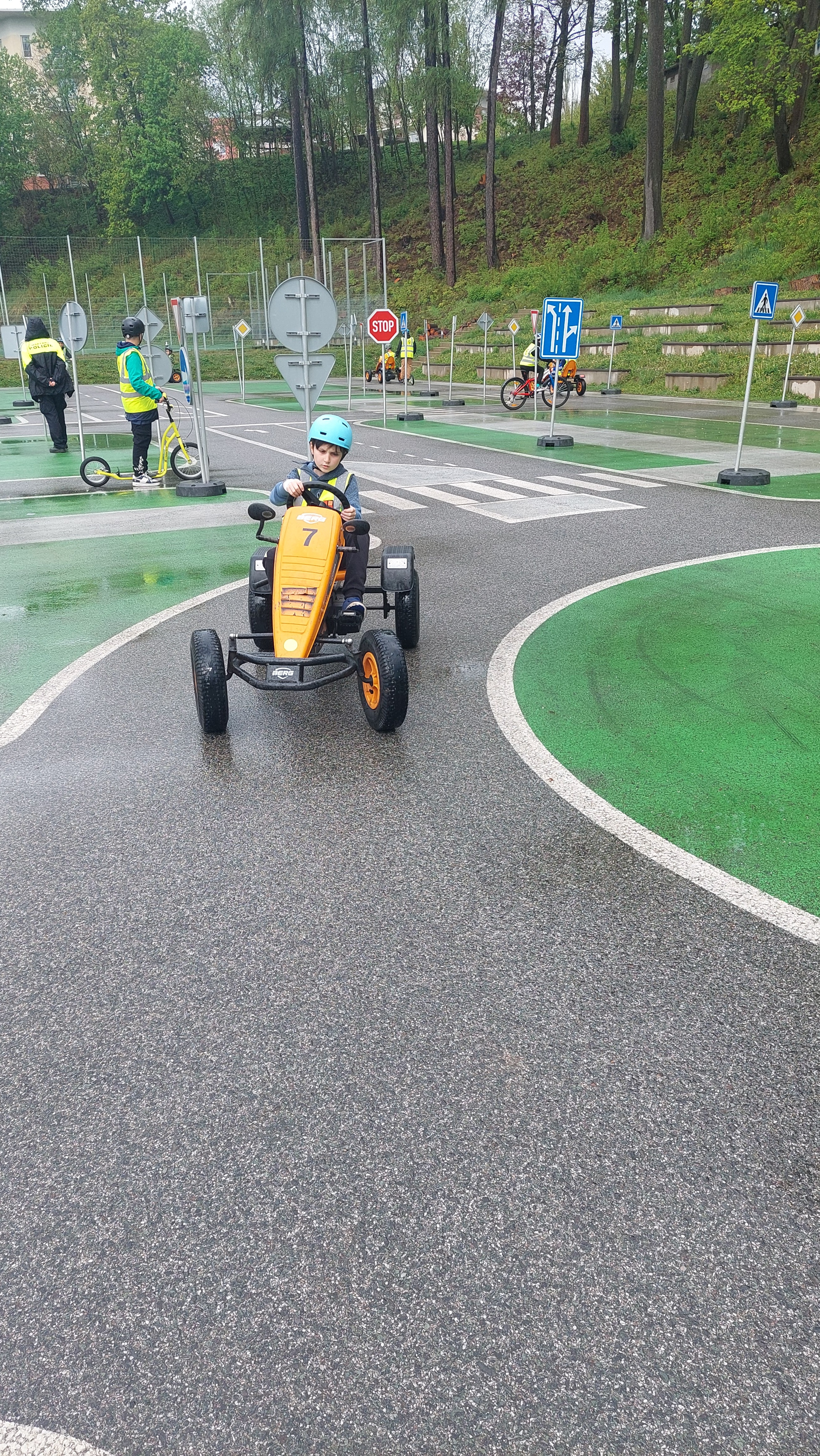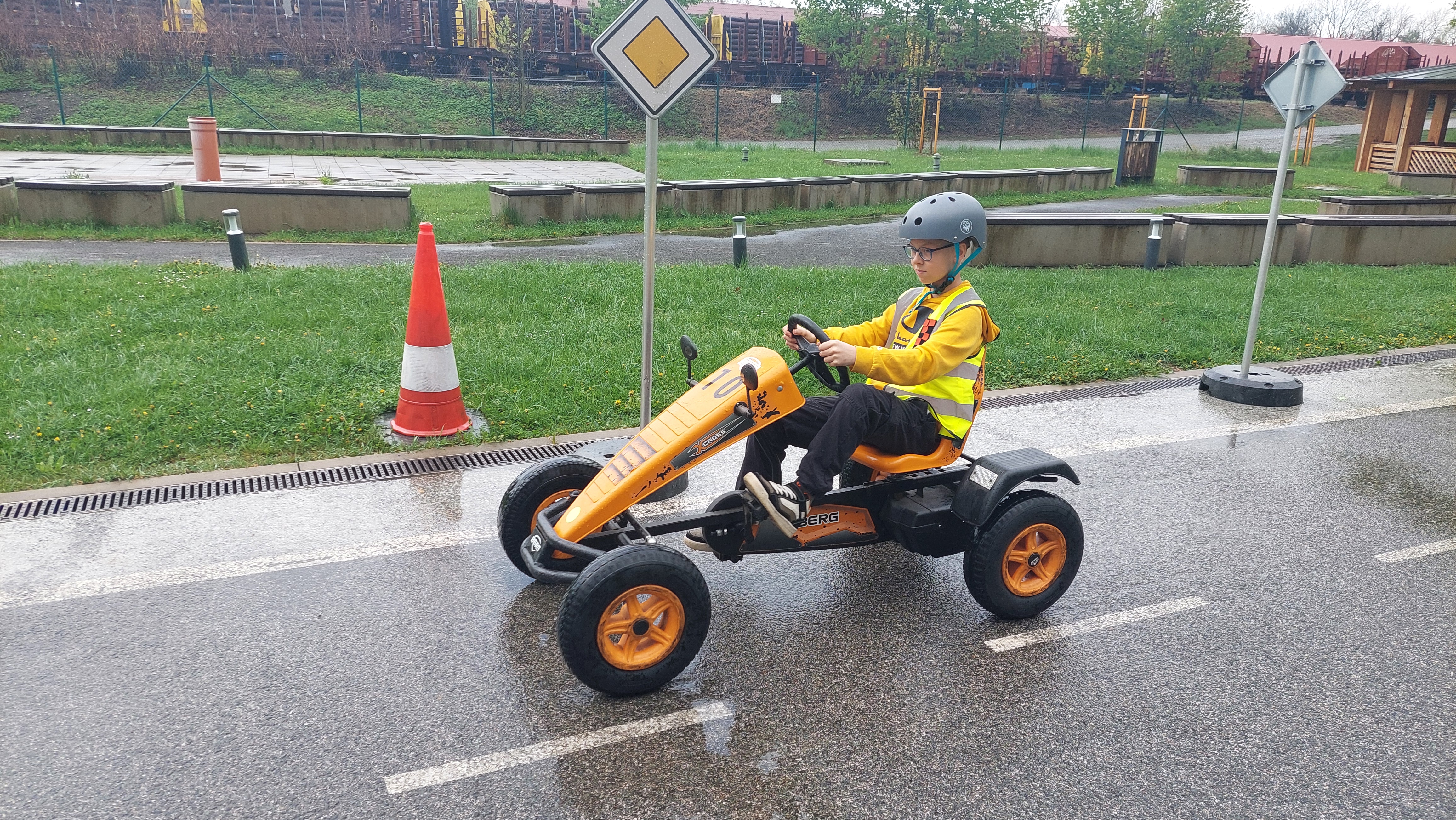Ve čtvrtek 24. dubna se třídy 4.A a 4.B vydaly na dopravní hřiště, kde si žáci vyzkoušeli nejen své cyklistické dovednosti, ale také si ověřili znalosti dopravních pravidel. I když nám počasí příliš nepřálo a chvílemi to vypadalo, že jízdy budeme muset odložit, nakonec jsme se přece jen dostali do sedel a mohli celý výcvik absolvovat.