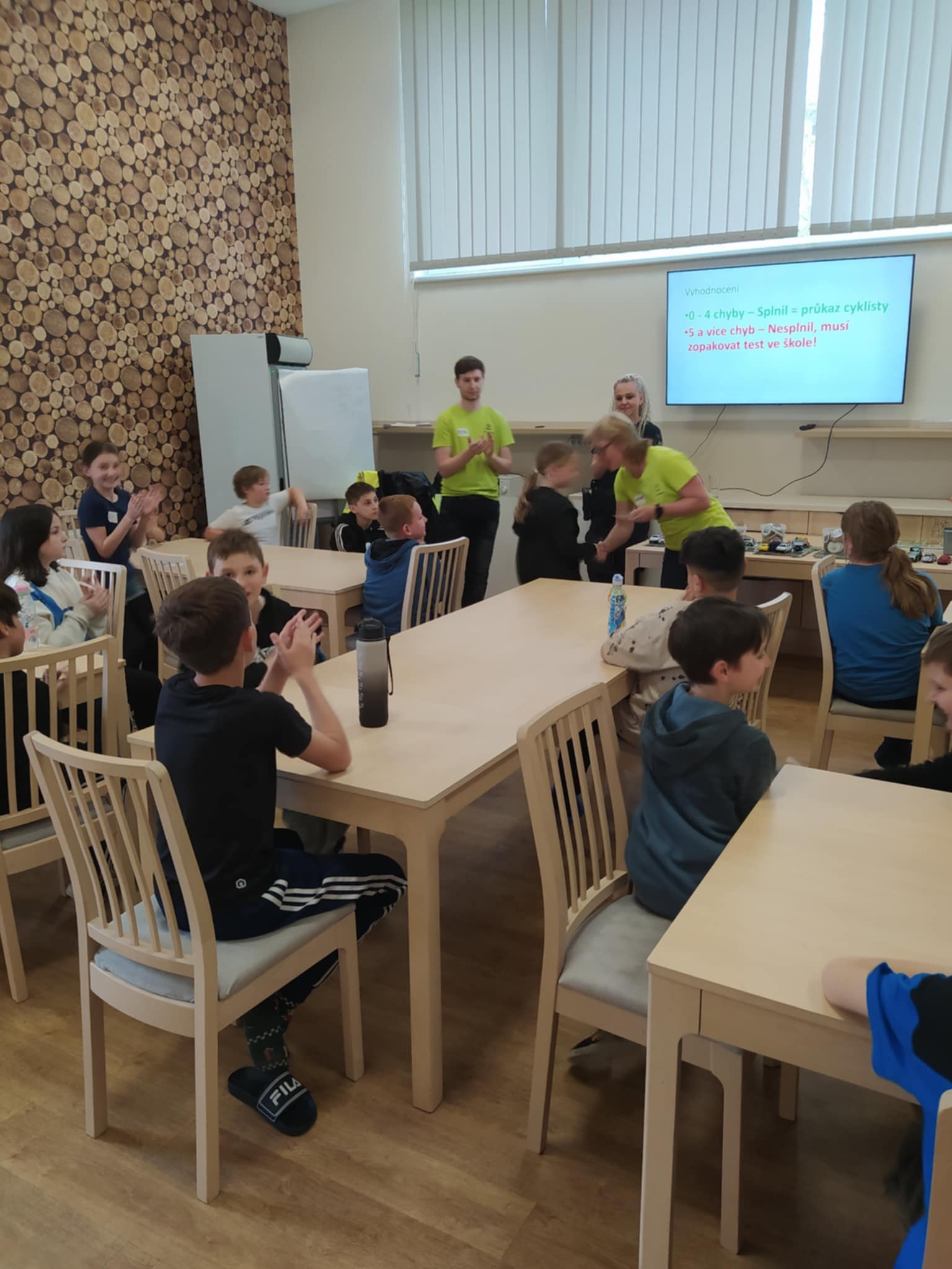 Na závěr je čekala důležitá část – závěrečný test. Ten úspěšně zvládli všichni žáci a mohli si tak odnést zasloužený cyklistický průkaz.