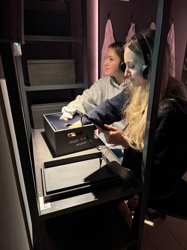 Druhá část exkurze se odehrávala v působivých prostorách Institutu, který spravuje společnost Post Bellum. Celý prostor svou syrovostí koresponduje s tématem výstavy. Postupně jsme procházeli interaktivní stanoviště a seznámili se s životní poutí pamětníka Tomáše Sedláčka. Provedl nás nejen po evropských druhoválečných bojištích, ale také následnými komunistickými represemi v Československu.