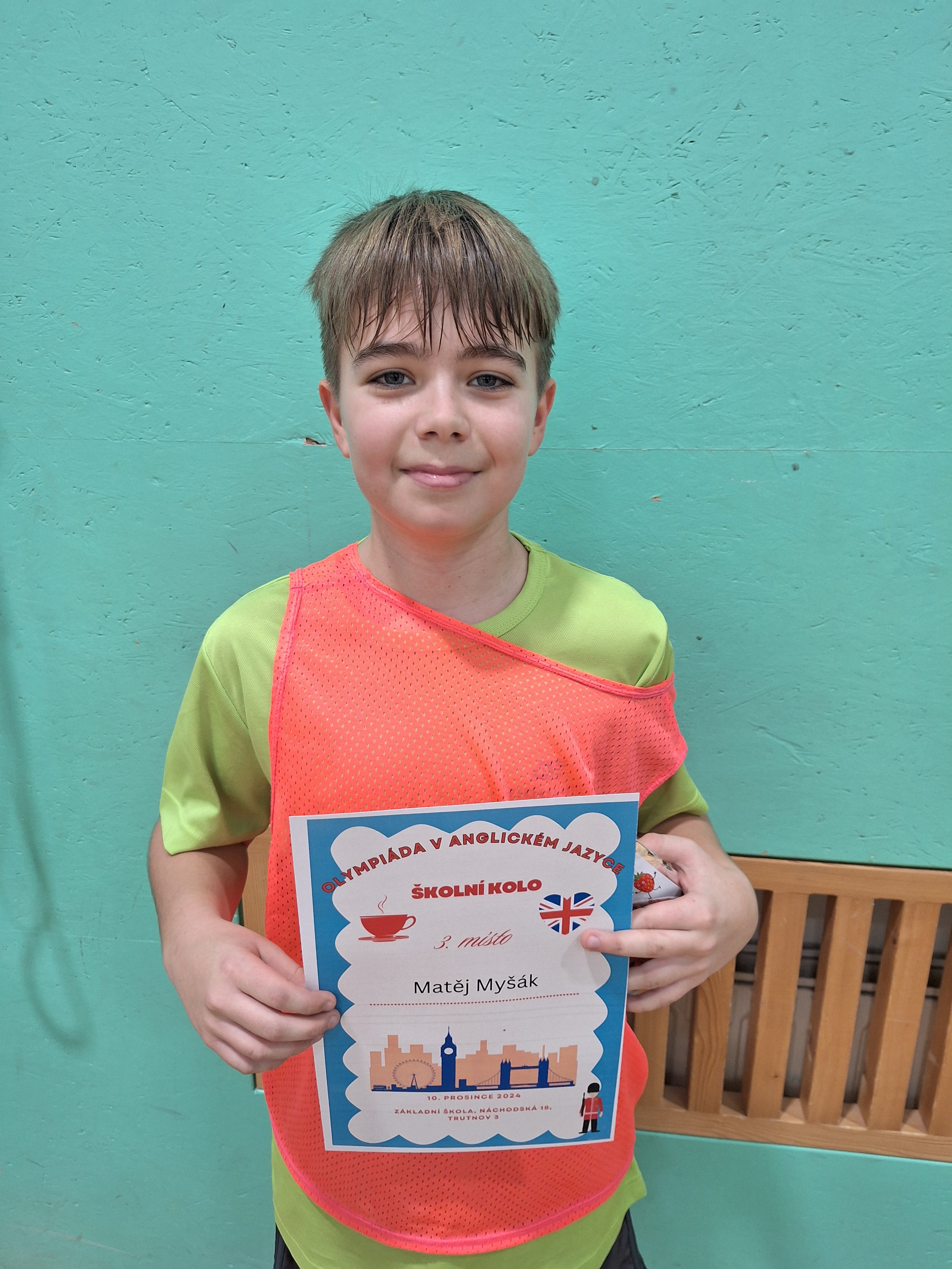 Matěj Myšák (8.A) – Matěj, nejmladší účastník na stupních vítězů, zazářil díky svým komunikativním schopnostem a přirozenému projevu.