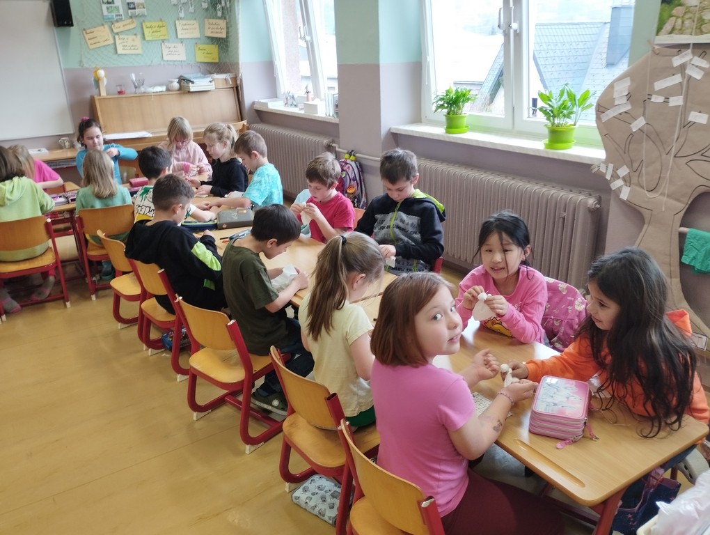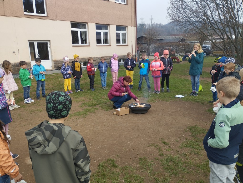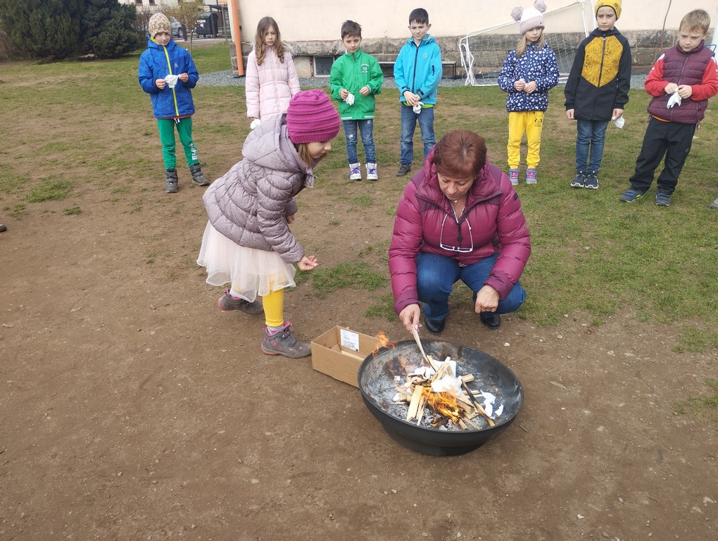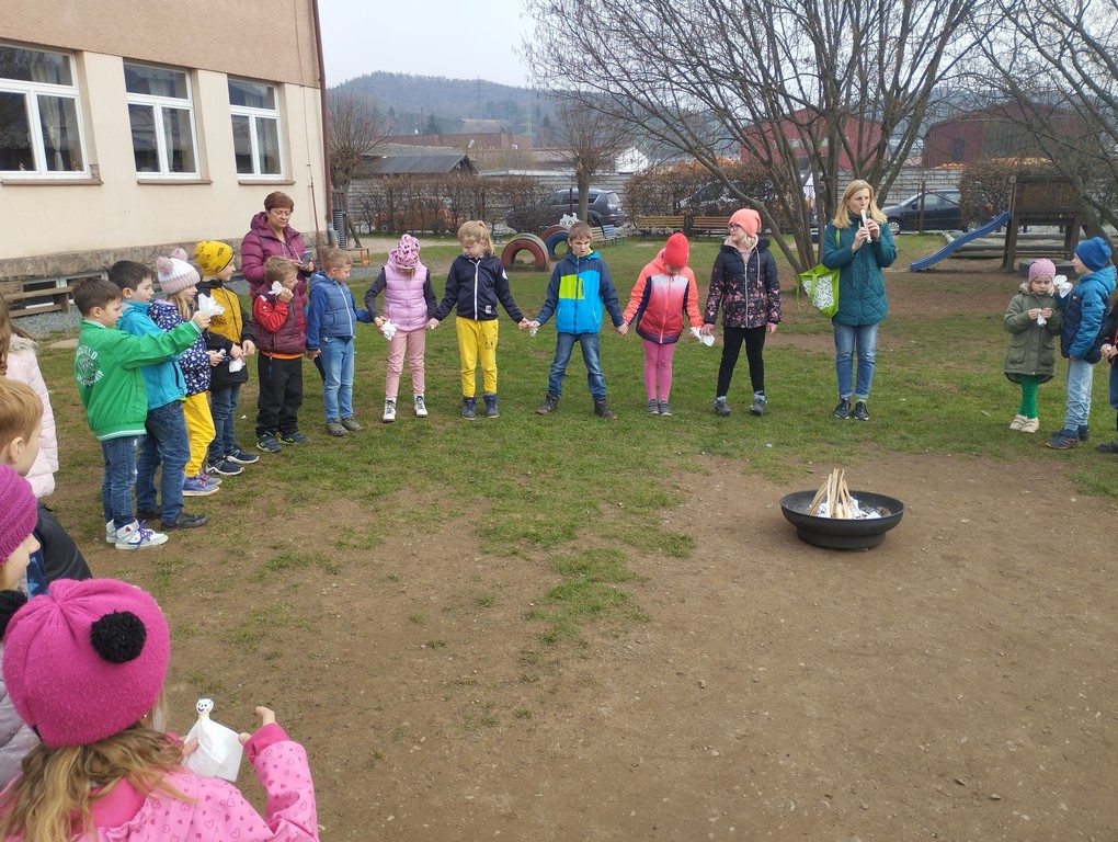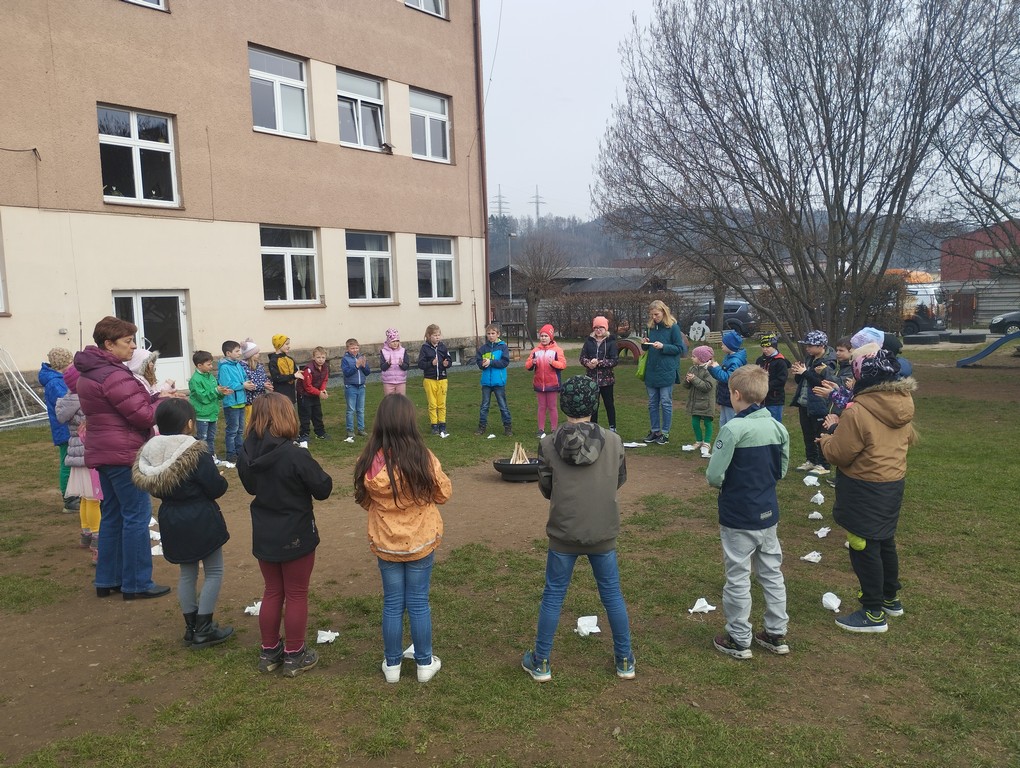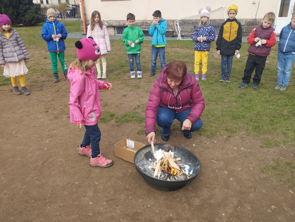 Letos začalo astronomické jaro v brzkých ranních hodinách 20. března. Jarní rovnodennost, prastarý pohanský svátek Ostara, jsme se rozhodli společně oslavit i v druhých třídách. Je to čas, kdy světlo začíná převládat nad tmou, oslavujeme nový život, nové začátky. Děti si připomněly Kolo roku, což je cyklus osmi výročních svátků, kam patří právě i jarní rovnodennost, následně si ho zkusily sestavit. Povídali jsme si o symbolech jara, mezi něž řadíme i setí semen či vynášení Moreny. Rituál vhození Moreny do vody je zvyk, který zakončuje zimu. Každý žáček si vyrobil malou figurku Moreny, které mohl předat své trápení, a následně jsme vhodili tuto figurku do rozdělaného ohně, který je též rituálem našich předků. Společně jsme si zazpívali a dopoledne si velmi užili.