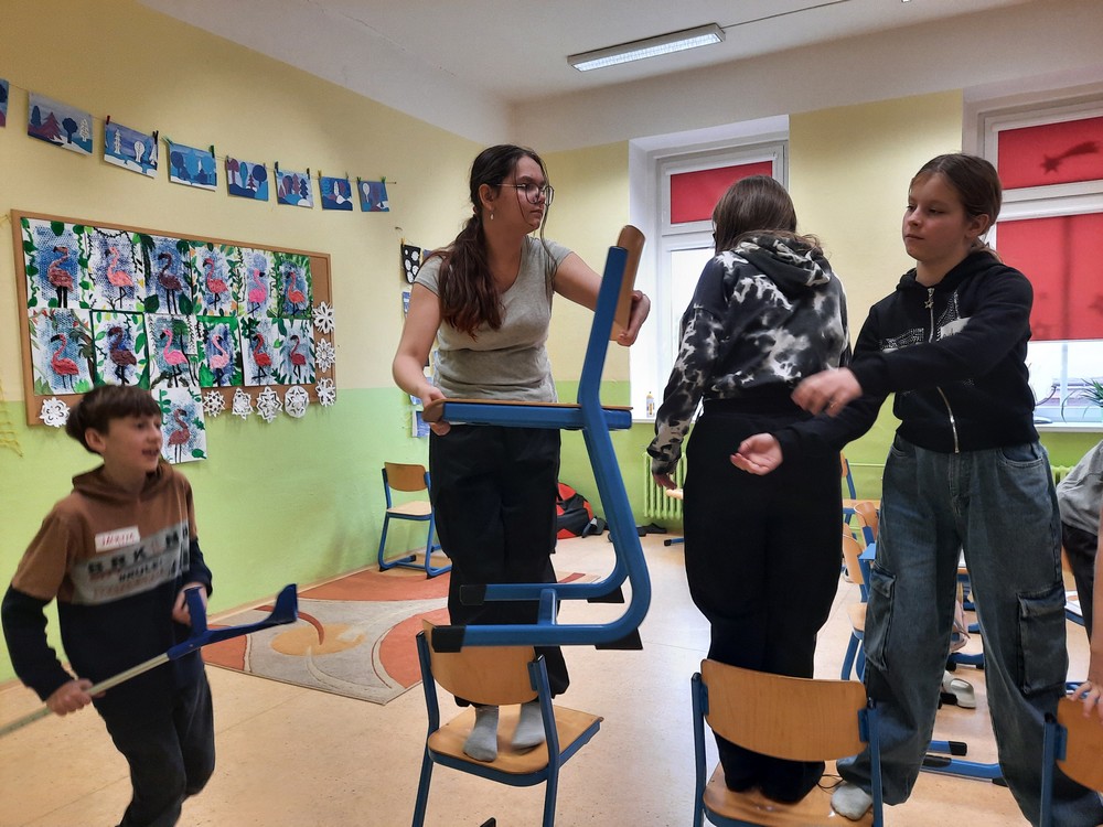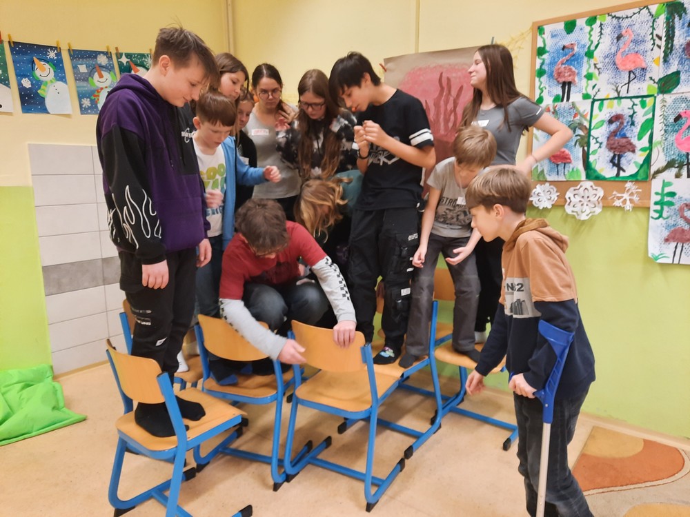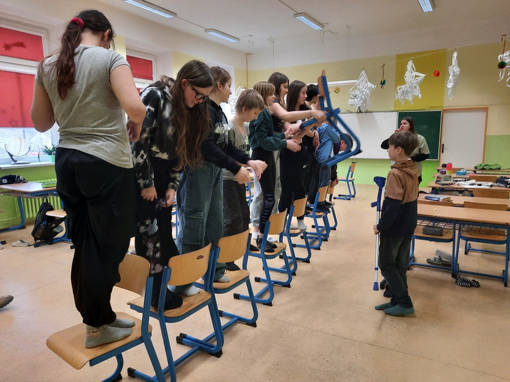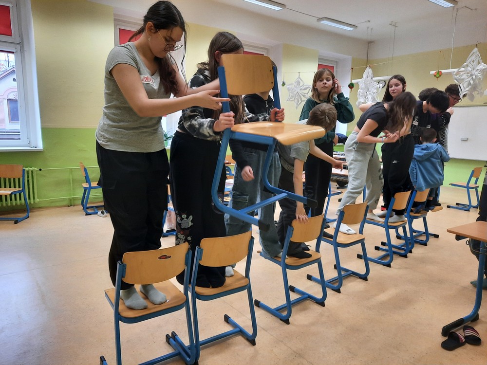 V rámci dlouhodobé spolupráce s centrem prevence Semiramis se naši žáci každé pololetí zabývají některým rizikovým jevem. Tentokrát se šesťáci sešli, aby čelili šikaně - učili se spolupráci, ohleduplnosti a respektu ke každému člověku. V jednotlivých aktivitách si vyzkoušeli, jak je důležité si dát navzájem šanci, důvěru a prostor. Také se naučili, že pro zdárnou misi musí všichni táhnout za jeden provaz. Tím vším se snažili nedat šikaně v kolektivu šanci. A musím říct, že se jim to dařilo…