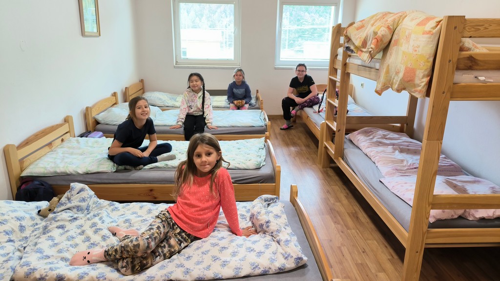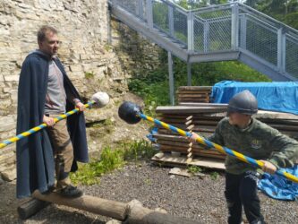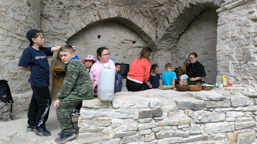 Posilněni výtečným obědem jsme se vypravili na místní zříceninu Vízmburk, kde nás čekal několikahodinový program. Část dětí si prošla komentovanou prohlídku hradu zakončenou zkouškou zdatnosti, kterou mohli zažít i rytíři v době dávné. Mezitím druhá část skupiny upekla vlastní placky, jež byly výtečné. Podvečer a druhý den dopoledne jsme strávili hrou na hřišti s velkým vyžitím.