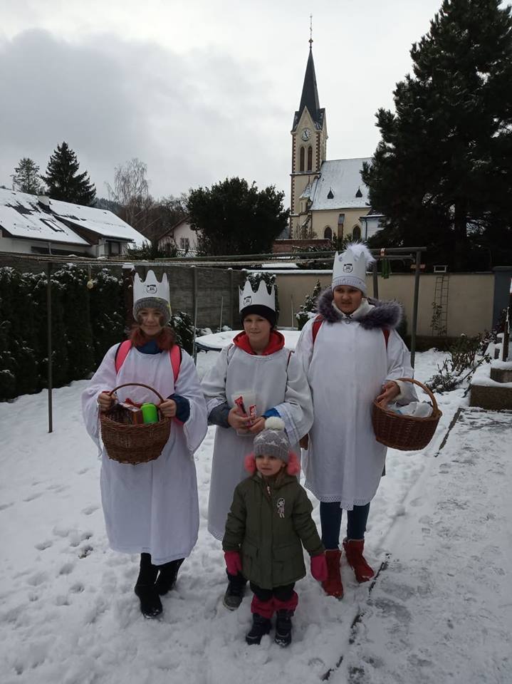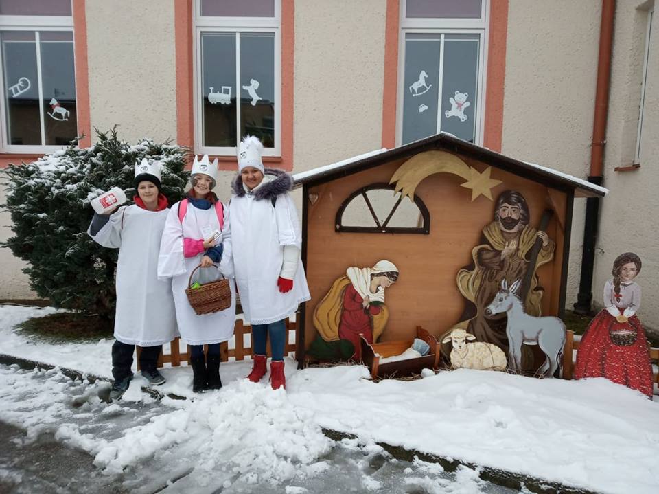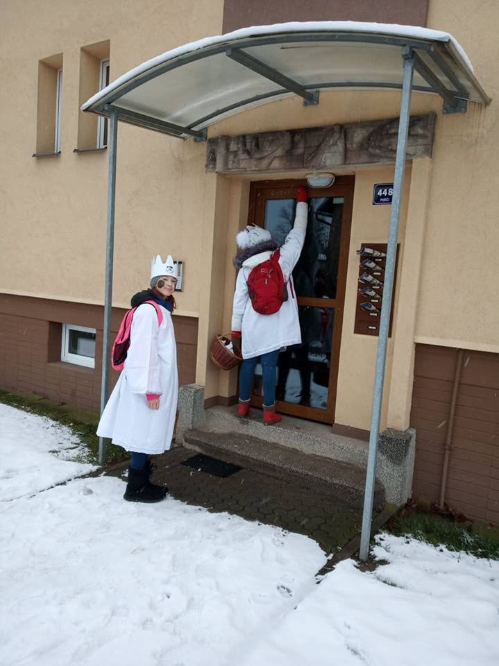 I letos se žáci 6.B zapojili do celostátní humanitární Tříkrálové sbírky. Ve středu 9. ledna ráno vyrazili tři králové vybavení posvěcenou křídou, kalendáříky, cukříky a zapečetěnou pokladničkou do ulic Poříčí. Koledníci obešli nejen své příbuzné, ale i několik firem a společností. Podarovali je i mnozí obyvatelé, do sbírky přispěly děti 1. stupně naší školy a většina pedagogů. Letošní výtěžek sbírky bude použit na nákup lineárních dávkovačů pro domácí zdravotní službu a domácí hospicovou péči. Kontinuální dávkování tišících prostředků významně zvyšuje kvalitu života nevyléčitelně nemocných. Smyslem sbírky je i snaha o vytrácející se osobní kontakt, zazpívat a popřát zdraví a štěstí v novém roce. Většina oslovených do sbírky přispěla, děti si vykoledovaly také dva koše sladkostí. Všem velmi děkujeme.